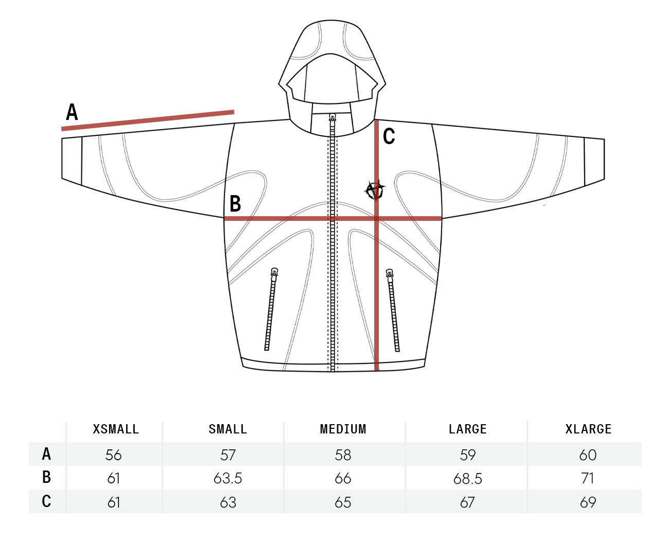 Reflective lines. Heat-reactive material that turns red when exposed to heat. Inner camo pattern mesh with a red theme. Detachable hood. Two front zippers on the chest. One inside pocket. Regular fit, true to size.